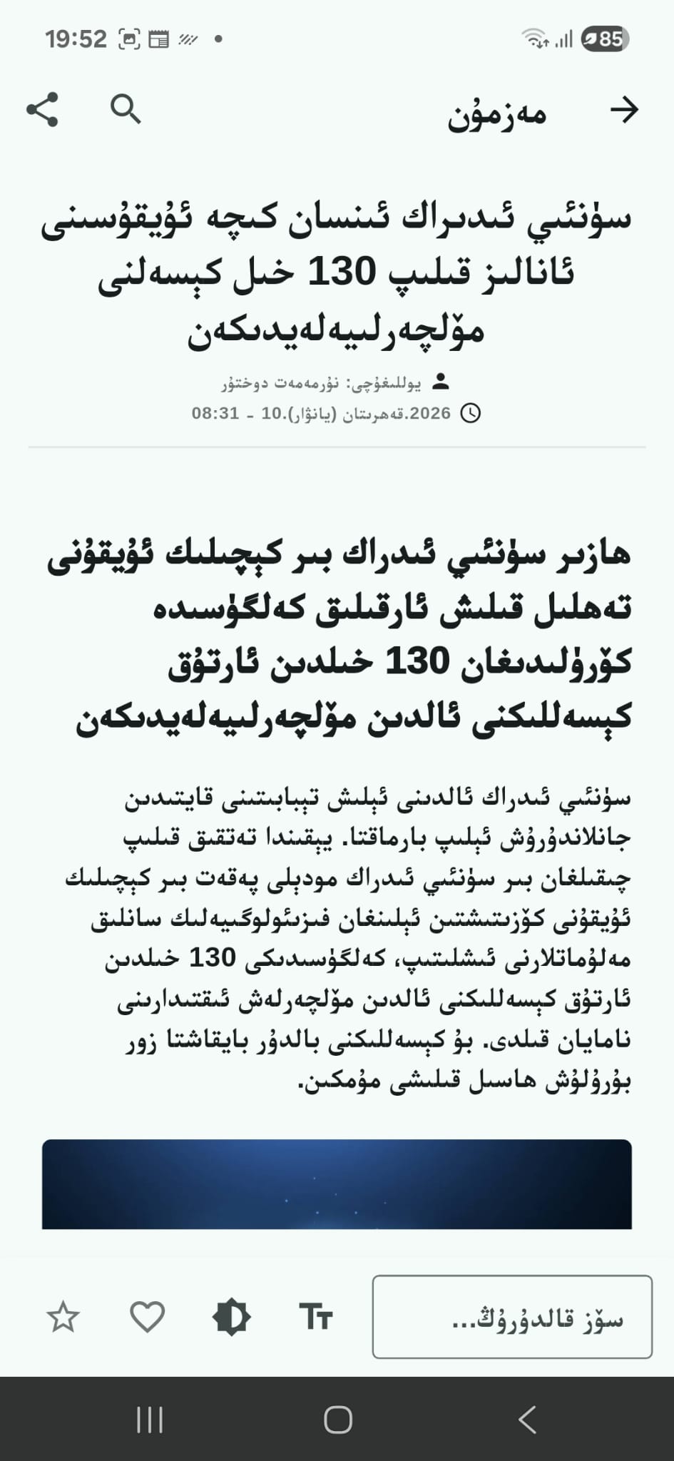 بۇ ئەپ پەقەت بىرلا ئۇچۇر سۇپىسى بولماستىن، بەلكى سىزنىڭ ئۇيغۇرچە ئانا تىلىمىزدا تەييارلانغان ئەڭ يېقىن «ساغلاملىق ياردەمچىڭىز» بولۇشقا تەييارلاندى: