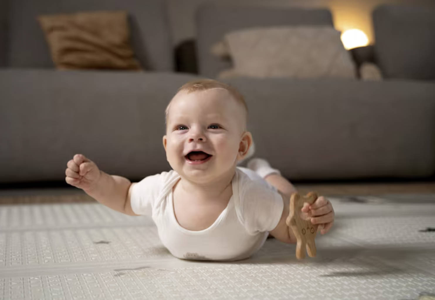 - ئويۇنچۇقلار: رەڭدار، ئاۋاز چىقىرىدىغان ياكى چاقنايدىغان ئويۇنچۇقلارنى ئۇنىڭ ئالدىغا قويۇپ، ئۇنىڭ قول ئۇزىتىشىغا ئىلھام بېرىڭ.