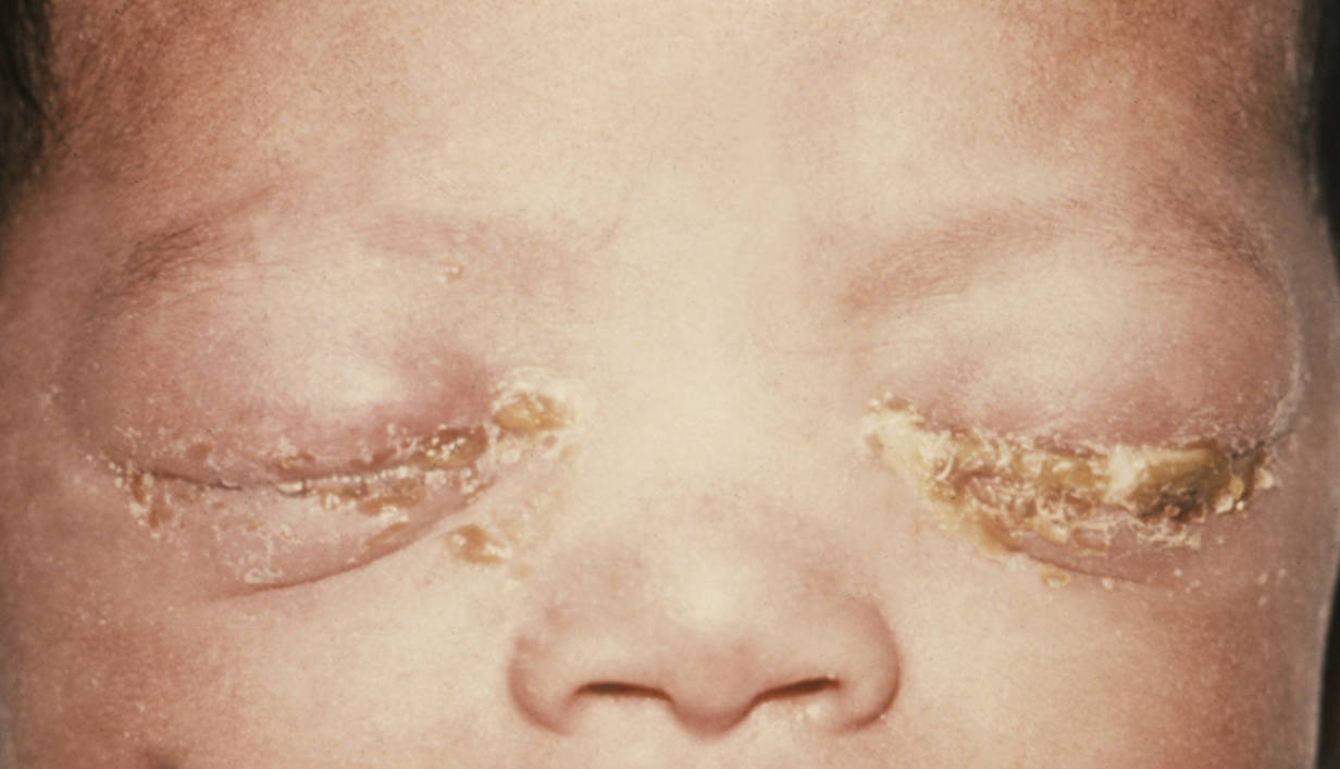 سۆزنەك باكتېرىيىسى ببلەن يۇقۇملانغان ھامىلىدار ئانىدىن تۇغۇلغان بوۋاقنىڭ كۆزىگە يۇقۇملانغاندا پەيدا بولغان كۆي ياللۇغى رەسىمدە بېرىلدى. رەسىم ۋىكىپېدىيادىن ئېلىندى. ئادرىس