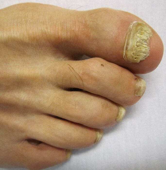ئىنگىلىزچە: Thickened and yellowed fingernails